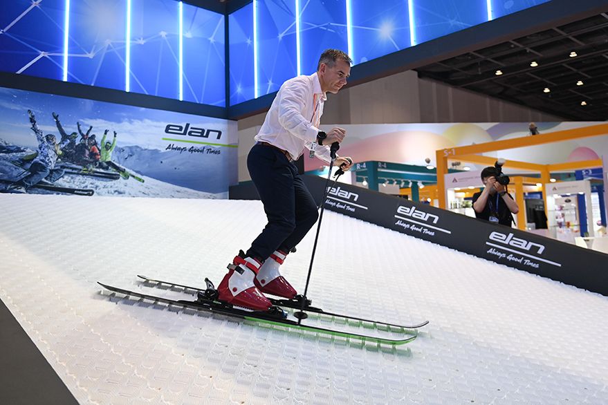 5月16日,来自斯洛文尼亚的企业代表现场展示雪具产品。