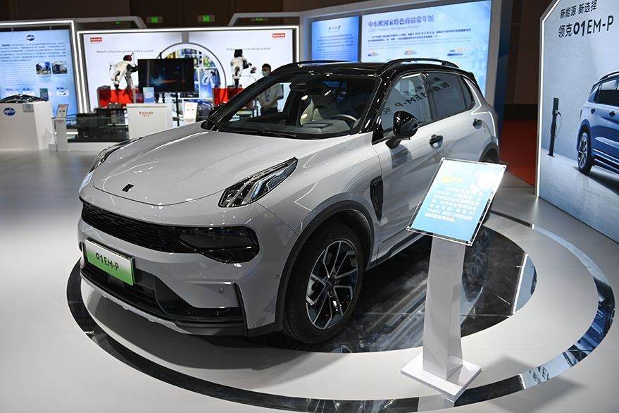 5月16日在中东欧展馆浙江展区拍摄的一款出口欧洲的领克汽车。