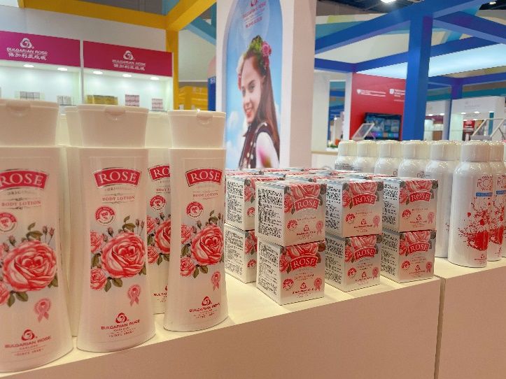 图为博览会现场展示的保加利亚知名玫瑰洗护产品。(图片来源:中国日报网)