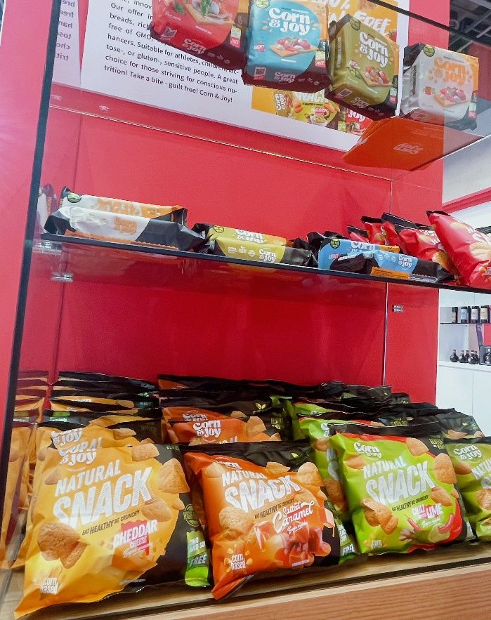 图为展会现场展示的中东欧国家零食。(图片来源:中国日报网)