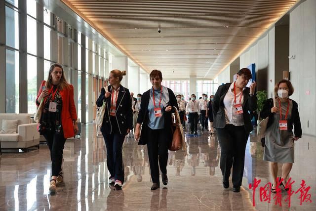 5月16日,浙江宁波,宁波国际会议中心,第三届中国-中东欧国家博览会暨国际消费品博览会开幕式前,外国参会嘉宾步入会场。(图片来源:《中国青年报》)