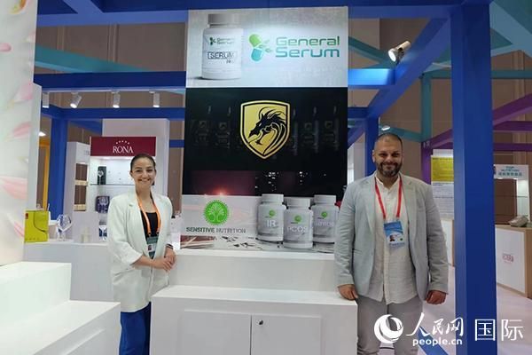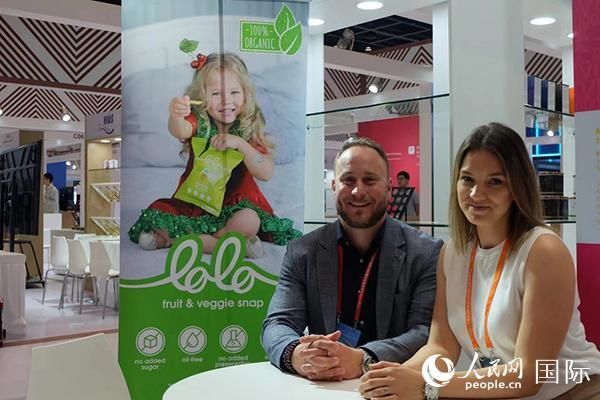匈牙利保健品品牌展商Sebdenics-Bettina(左)与父亲(右)来华参加中国—中东欧国家博览会。(图片来源:人民网)