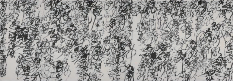 “我从小学习书法时,老师就讲过,每个字左右不能碰,这是传统书法的规则。历史上,曾经徐渭有些作品希望打破行距的限制,但他的字和字之间并没有打架;还有郑板桥,他就是乱石铺路,每个字大小不一,”王冬龄这样阐述他的“乱书”创作,“我是彻底把汉字打散,让看的人能跨越识别文字符号的障碍,直接感受由线条传递出的情感。是水墨、汉字、抽象之间的交织,更发挥了书法的当代性。这是历史上从来没有人做过的。”