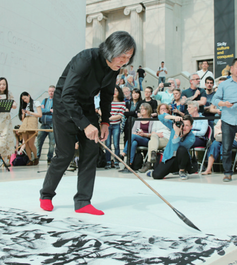 王冬龄在大英博物馆用乱书创作高3.67米、宽5.76米的《心经》全文(图片来源:欧洲时报英国版)