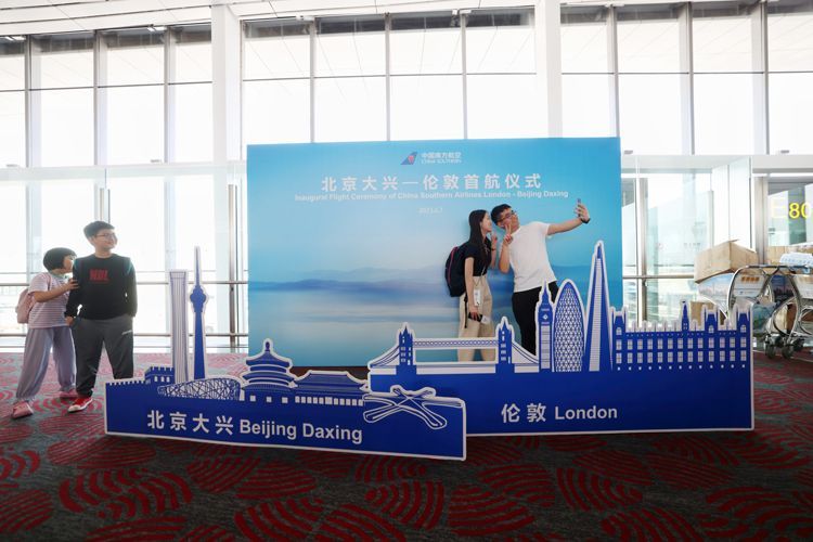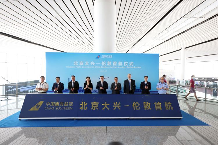 6月7日,南航北京大兴—伦敦航线顺利首航,该航线的开通标志着中英往来一座新的“空中桥梁”架设完成。据介绍,南航北京大兴—伦敦希思罗航班每周7班,由空客A350机型执飞。