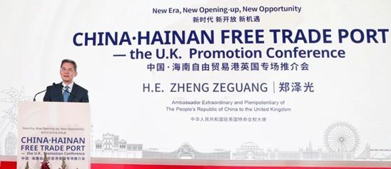 中国驻英国大使郑泽光在致辞中表示,积极拓展与海南的合作将为中英经贸关系发展带来新机遇。一是搭建双边贸易投资新通道。海南自贸港的税收优惠和开放制度可为中英贸易投资合作提供强大助力。二是打造现代产业合作新亮点。海南自贸港聚焦现代服务、高端消费、科技创新、节能环保、数字经济等重点产业行业,与英国经济的优势领域和重点发展方向非常契合,双方合作潜力巨大。三是增添国际前沿合作新动能。海南自贸港建设五年来,已形成国际旅游消费中心、国际医疗旅游先行区、国际教育创新试验区等响亮品牌。英国企业可借助这些平台拓展与中国以及亚太地区其他国家的务实合作。?