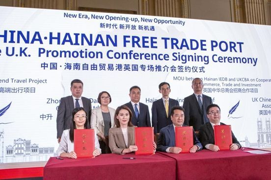 海南自贸港英国专场推介会签约仪式现场。
