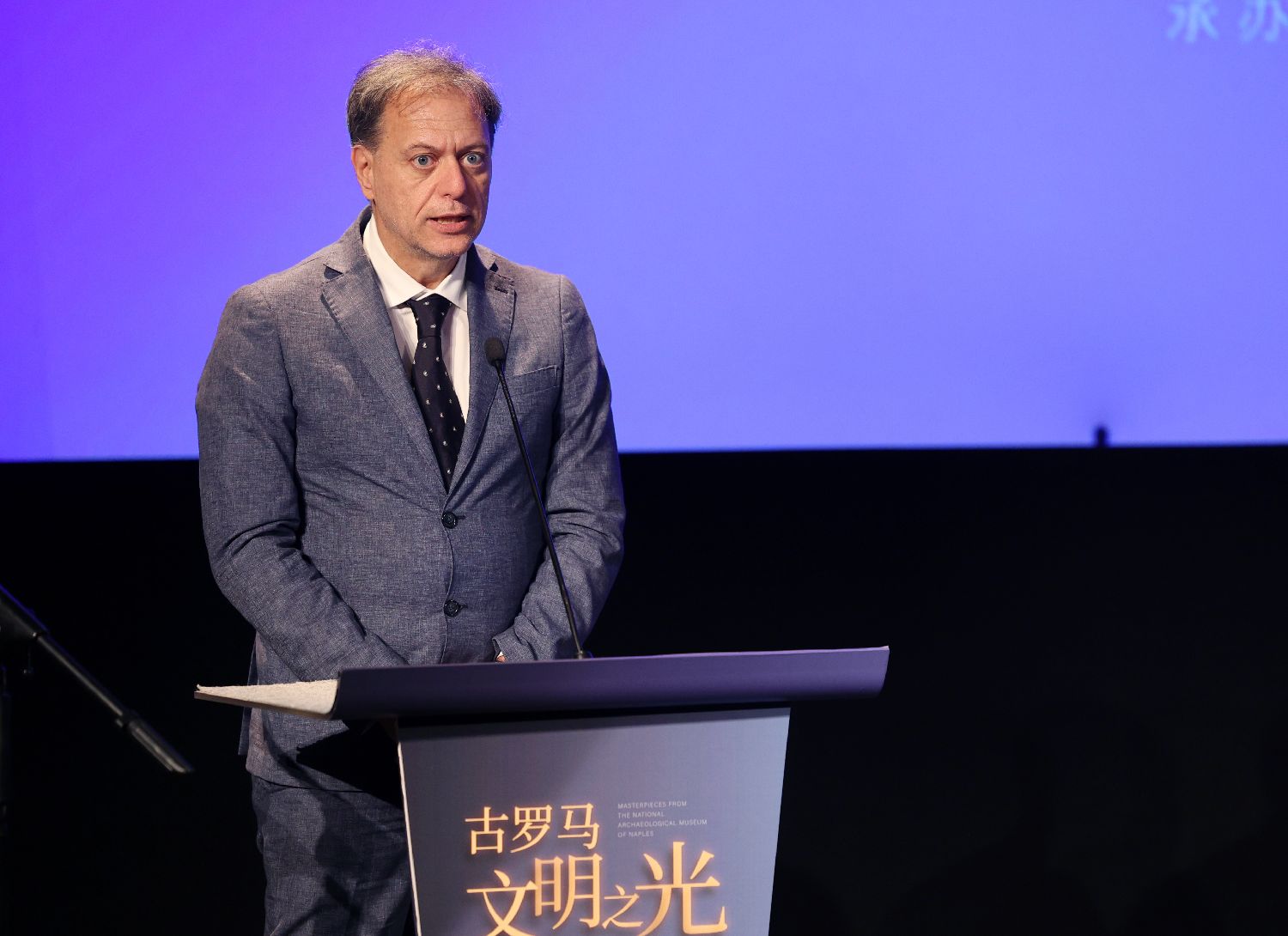 2023年6月12日,意大利那不勒斯国家考古博物馆馆长保罗·朱利里尼在开幕现场发表致辞。