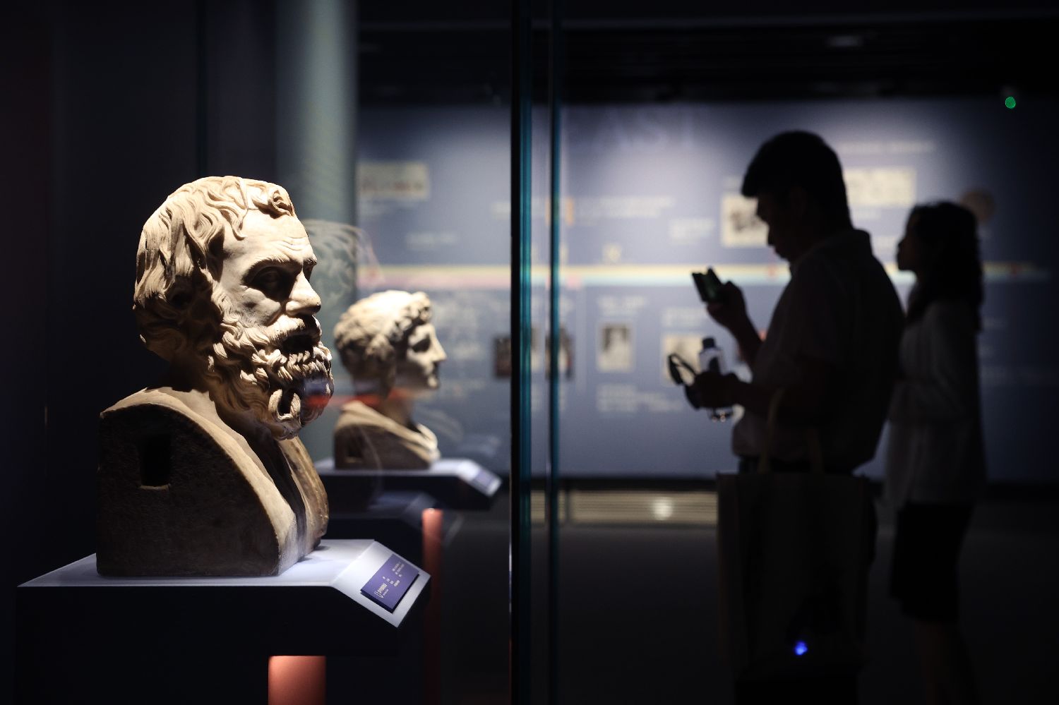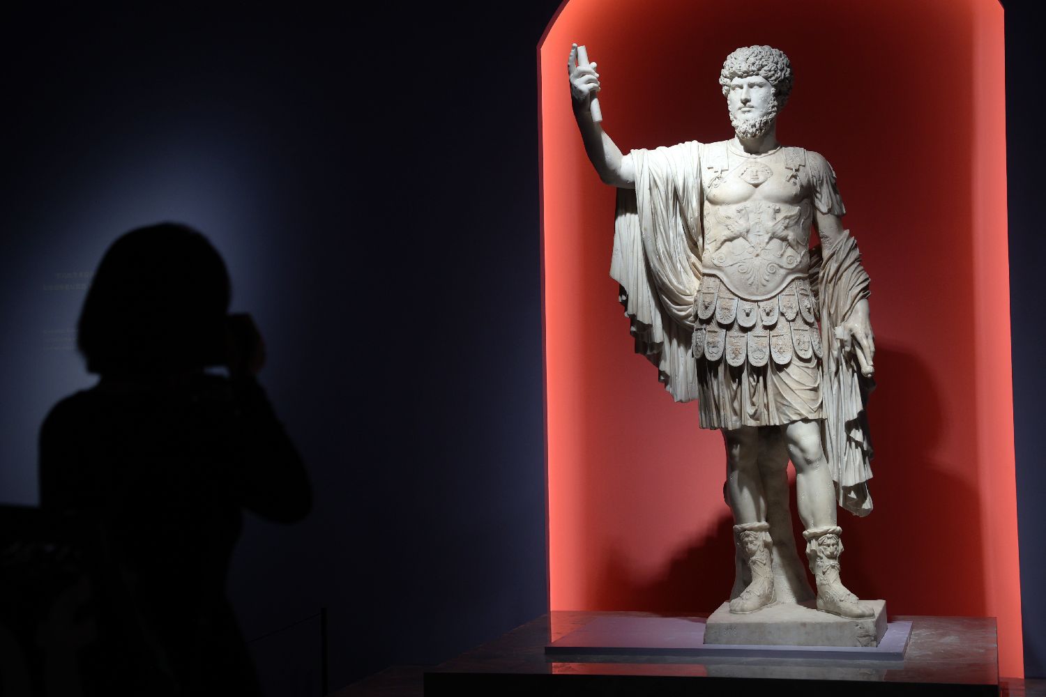 2023年6月12日,大理石作品《穿板甲的路奇乌斯•维鲁斯雕像》吸引参观者驻足拍摄。