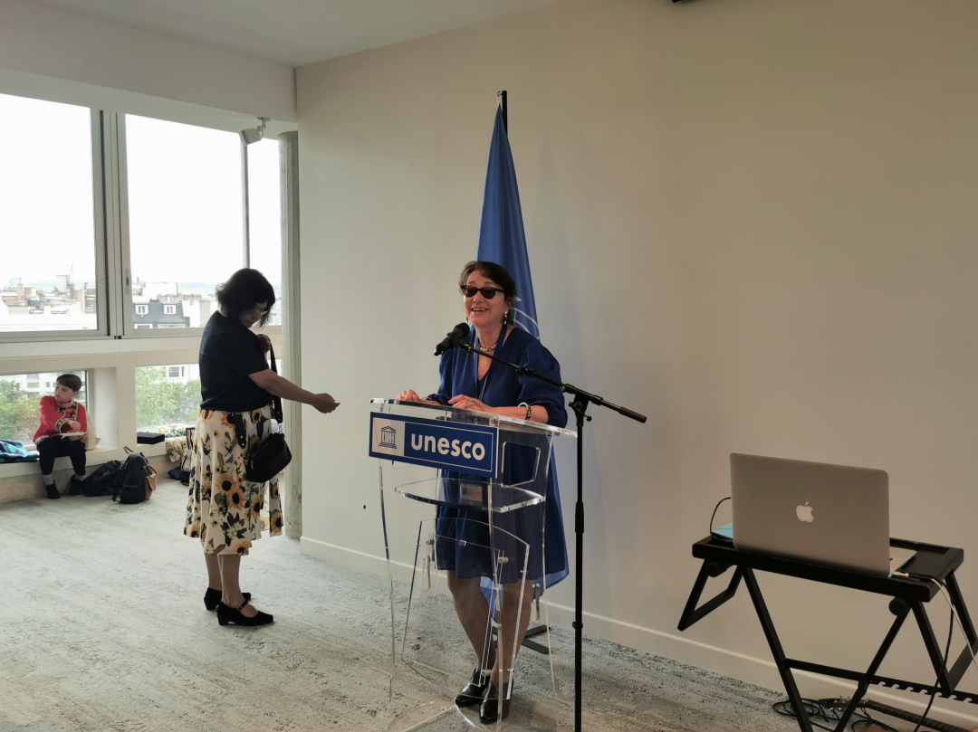 联合国教科文组织协会委员会主席玛丽塔·邦泽弗(Marietta Bantchev)致辞。