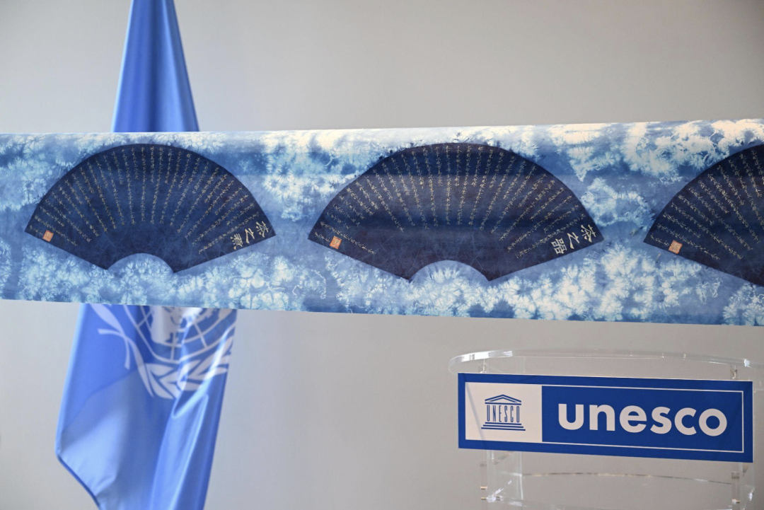 用板蓝根蜡染制作的陆羽《茶经》也在此次国际茶日活动上展出。(图片来源:摄影师马海雯 摄)