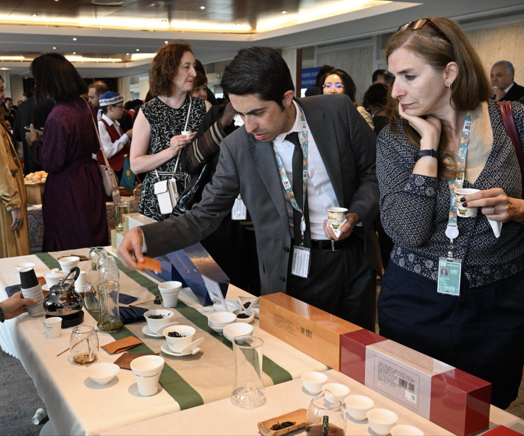 联合国教科文组织副总干事曲星、中国常驻联合国教科文组织大使衔代表杨进、副代表王盈,12位常驻联合国教科文组织大使、法国茶业协会成员等百余人出席活动。自2019年第74届联合国大会宣布将5月21日设为“国际茶日”后,这已经是第二次在联合国教科文组织总部举办线下茶文化交流活动。