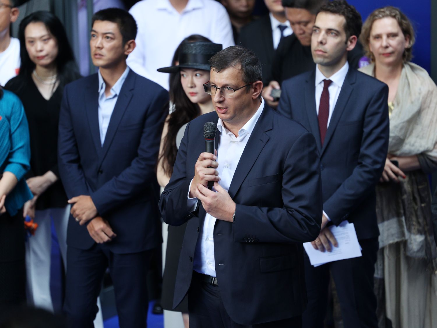 7月5日,伊夫·克莱因档案馆总监弗朗索瓦·鲁林在开幕式现场致辞。(图片来源:均为本报特约记者李大鹏摄)