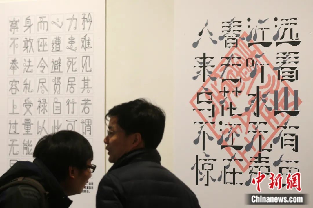 以“传承与创造”为主题的2015两岸大学生汉字文化创意大会作品展在南京艺术学院开展。(图片来源:中新网)