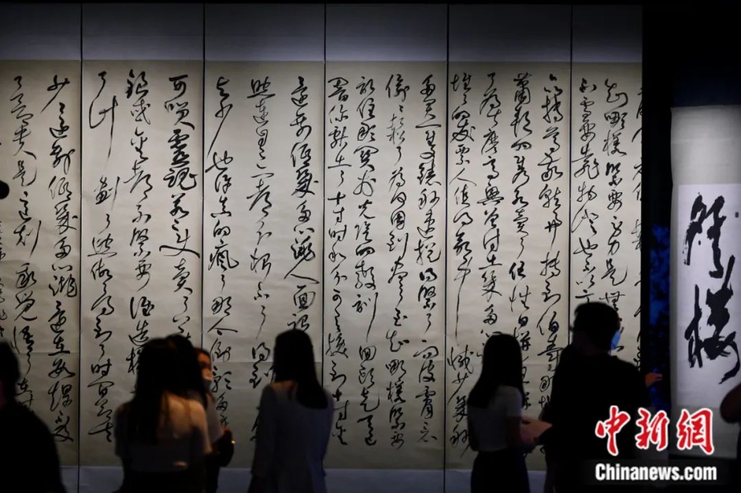 2022年7月,香港艺术馆举行“汉字城韵——书法中的诗舞画乐”新闻界预展,入场人士欣赏书法作品。(图片来源:中新网)
