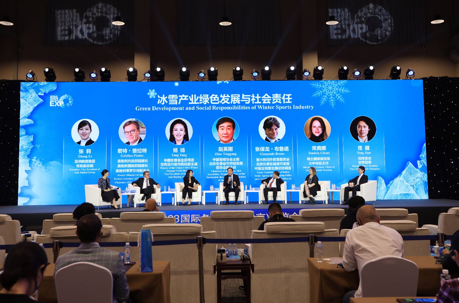 2023年9月15日,2023国际冬季运动(北京)博览会在北京首钢园举行,来自欧洲的嘉宾在主论坛上分享了如何采取积极措施减少碳排放,保护冬季运动和冰雪文化。