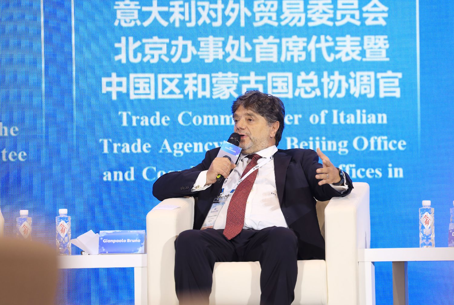 2023年9月15日,意大利对外贸易委员会北京办事处首席代表张保龙·布鲁诺(Gianpaolo Bruno)分享关于冰雪产业绿色发展的观点。 欧洲时报特约记者 卞戈 摄