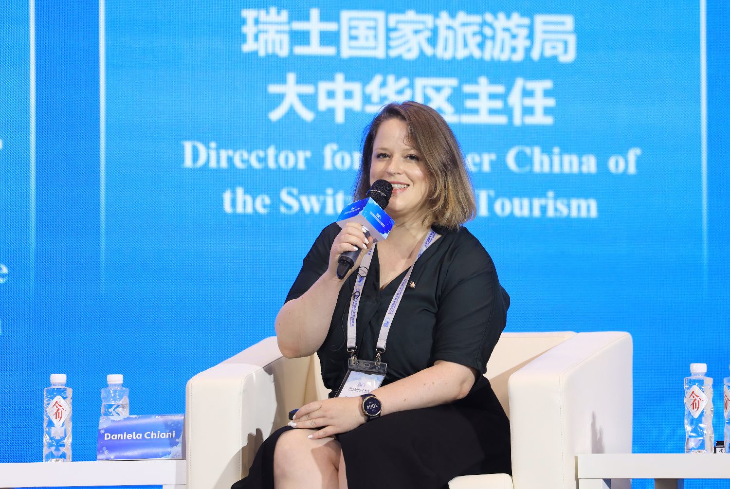 2023年9月15日,瑞士国家旅游局大中华区主任常典娜(Daniela Chiani)向嘉宾们分享“可持续瑞士项目”。 欧洲时报特约记者 卞戈 摄