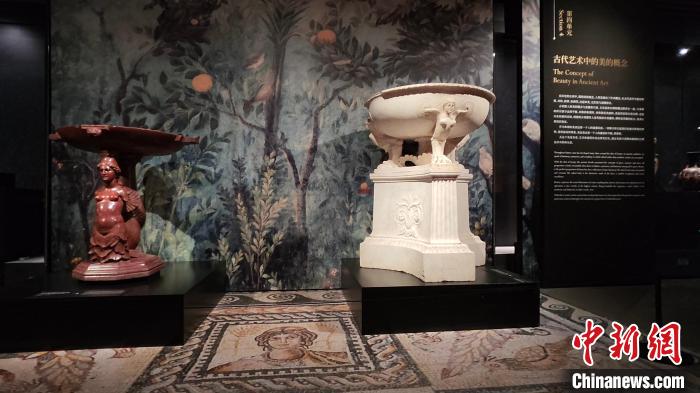 9月25日,“庞贝神话——意大利那不勒斯国家考古博物馆藏古希腊古罗马珍品文物展”在位于北京的国家典籍博物馆开幕。图为展览现场。(图片来源:中国文物交流中心供中新网图)