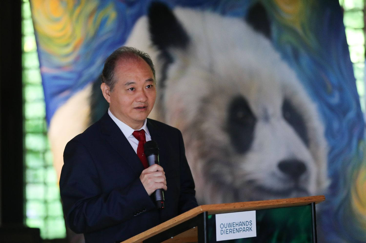9月27日,在荷兰雷嫩的欧维汉兹动物园,中国驻荷兰大使馆公使赵德勇在大熊猫“梵星”欢送仪式上致辞。