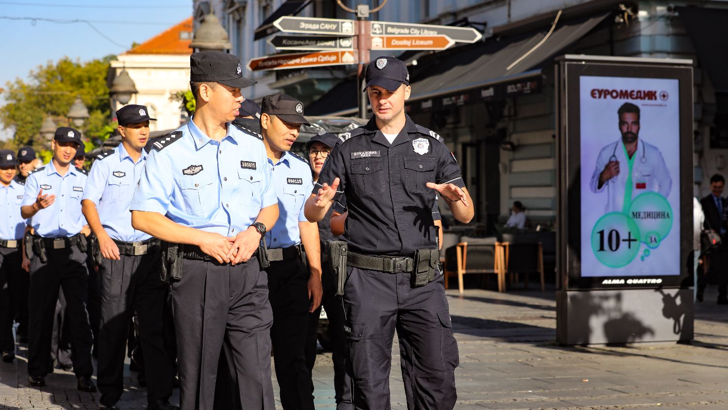 9月28日,在塞尔维亚首都贝尔格莱德,中塞两国警察在街头联合巡逻。