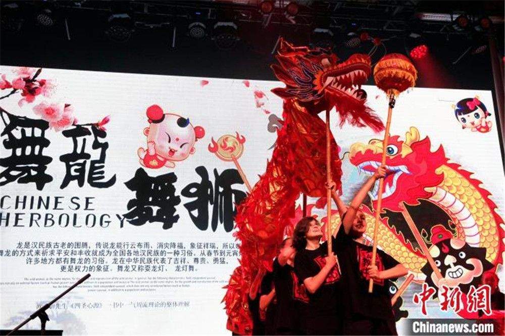 当地时间9月30日,“丝路情缘”——中国影视节目展播俄罗斯启动仪式在莫斯科举行,中俄青年共贺中秋晚会同时举办。图为俄罗斯学生表演的舞龙节目。