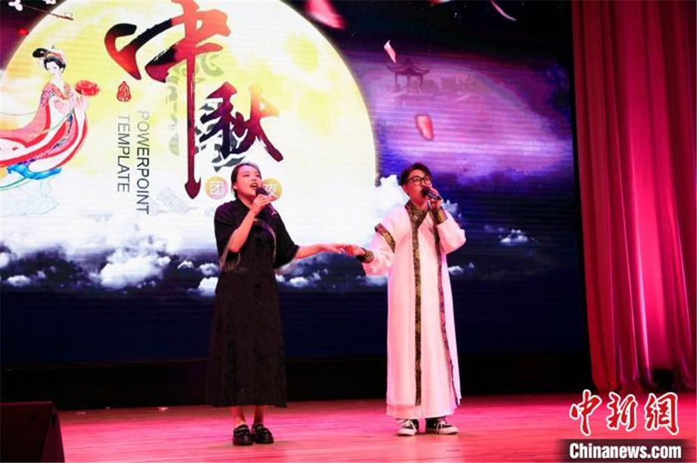 当地时间9月30日,“丝路情缘”——中国影视节目展播俄罗斯启动仪式在莫斯科举行,中俄青年共贺中秋晚会同时举办。图为中国留学生现场演唱歌曲。