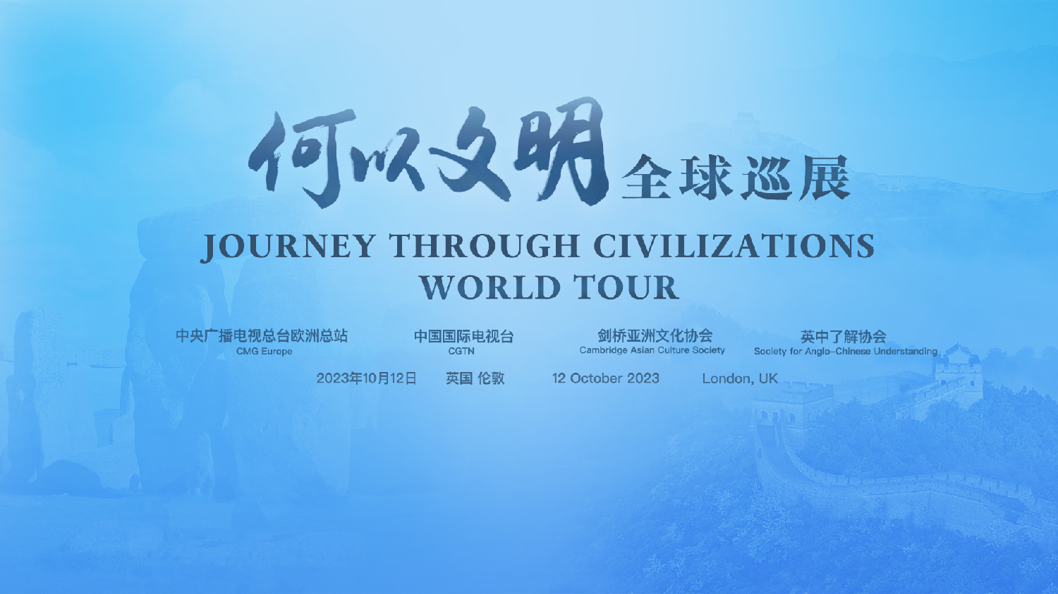 【欧洲时报】当地时间10月12日,中央广播电视总台“‘何以文明’全球巡展·英国特展”启动仪式在伦敦皇家造币博物馆旧址举行。本次特展由总台欧洲总站主办,剑桥亚洲文化协会、英中了解协会协办。中国中宣部副部长、中央广播电视总台台长慎海雄作视频致辞。中国驻英国使馆代表、多国驻英使节、英国知名专家学者及青年学生等80余位嘉宾出席活动。