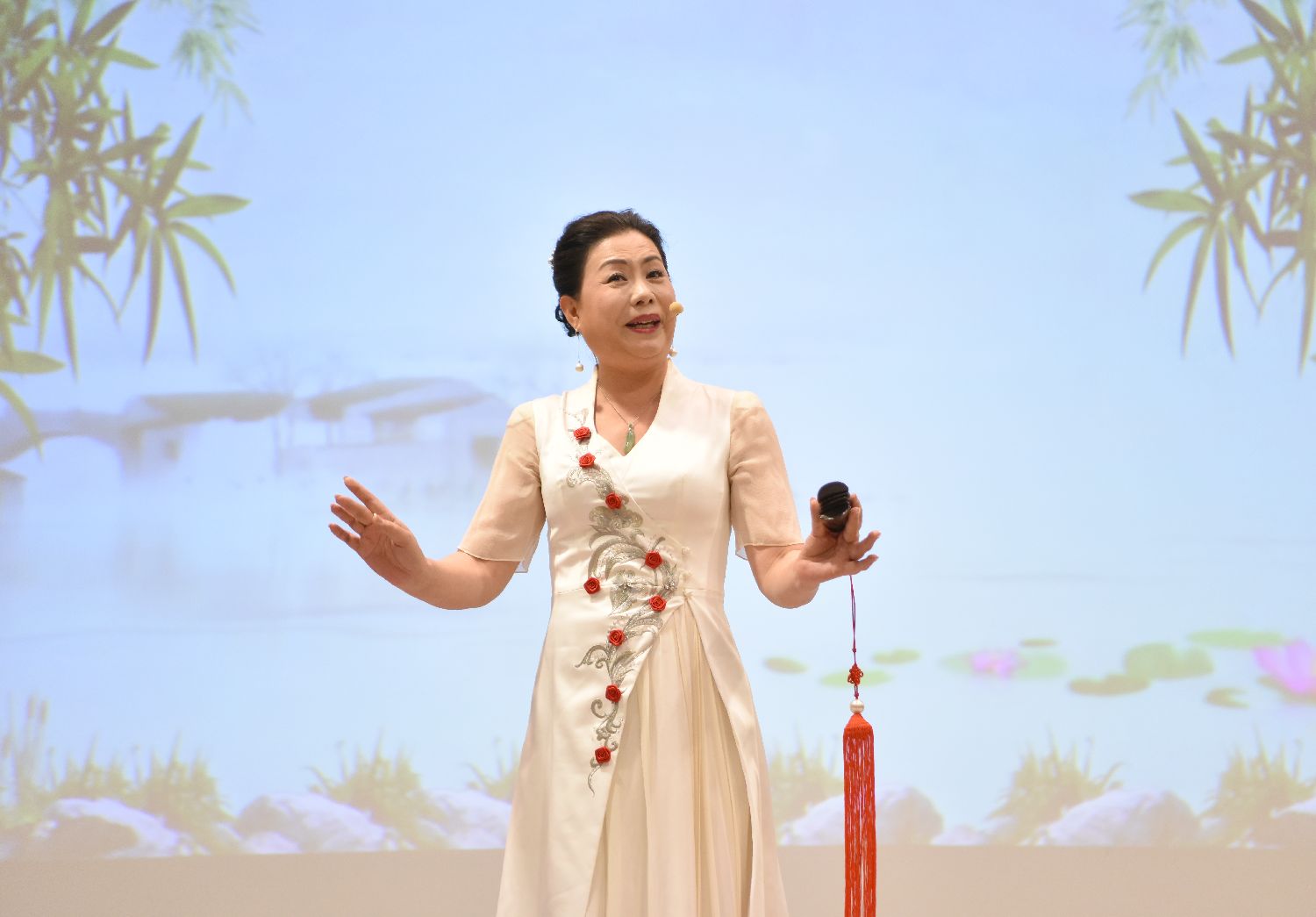 11月6日,苏州评弹表演艺术家盛小云在柏林第八届德国“中国曲艺周”闭幕演出中表演。