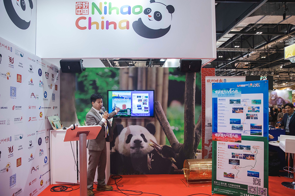 在中国驻伦敦旅游办事处的指导下,湖北携手北京、上海、陕西和江西,共同组成中国展区精彩亮相。整个中国展区以“你好!中国”中国国家旅游形象为主题,以卡通熊猫形象、“Nihao China”彩色字母,以及“你好中国”汉字古风印章构成,受到世界各国旅游业界人士和英国民众的喜爱。