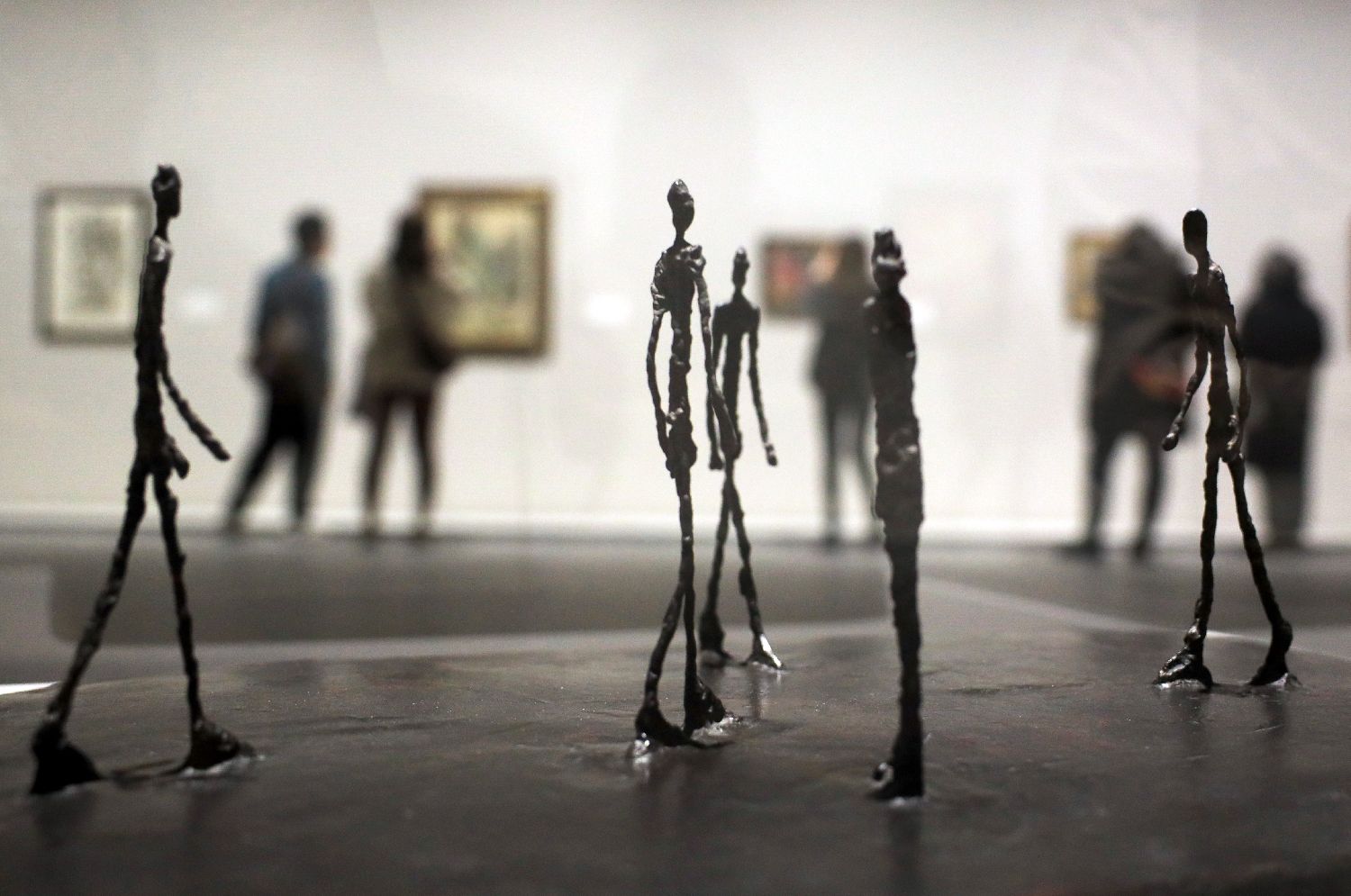 2023年11月10日,阿尔伯托·贾科梅蒂的青铜作品《城市广场II》亮相展览现场。