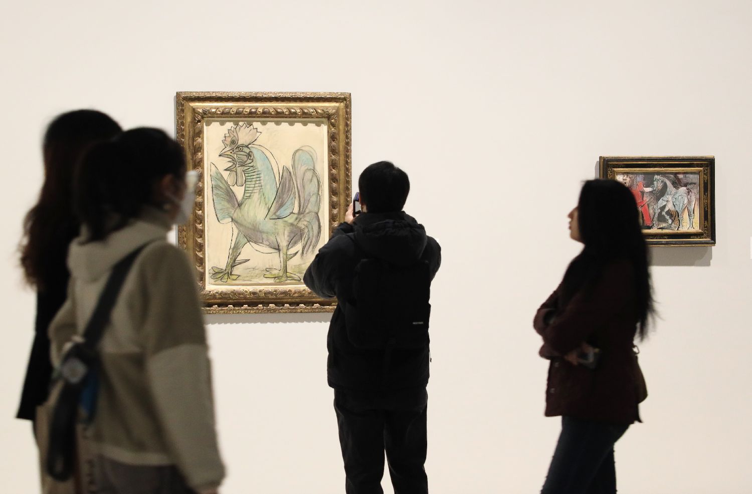2023年11月10日,观众在展览现场欣赏巴勃罗·毕加索的代表作品。