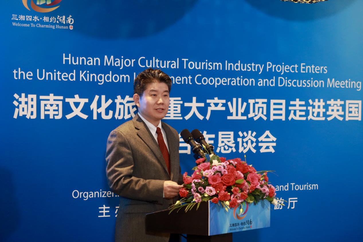 中国驻英国大使馆公使衔参赞李立言为本次推介会致开幕词,他向远道而来的湖南文化旅游代表团致以热烈的欢迎。李立言表示,人杰地灵的湖南省不仅有着风景独秀的名山大川,还孕育了无数伟人奇才,是中国人民伟大领袖毛泽东、中国杂交水稻之父袁隆平、中国首位驻外使节郭嵩涛和晚清湘军首领曾国藩的故乡。李立言表示,湖南省旅游资源丰富,文化遗产深厚,与英国在多方面有相似之处,通过发展文旅合作,有助于促进中英人文交流互通。