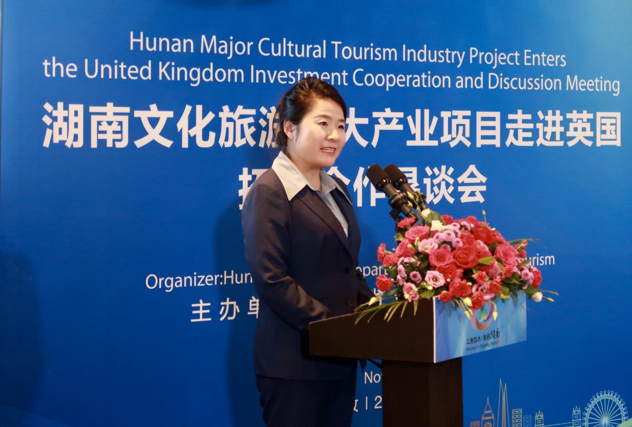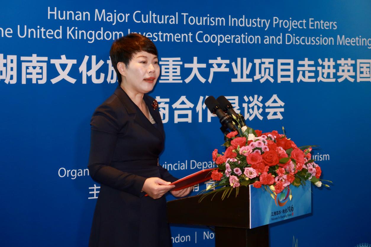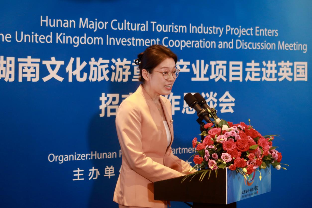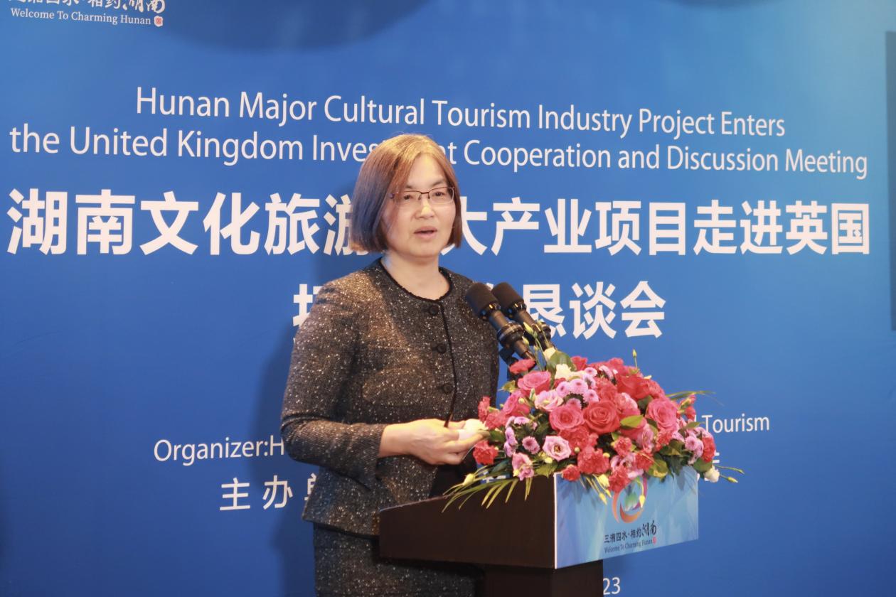 湖南省文化和旅游厅党组成员、副厅长张希慧从“奇峰三千,秀水八百”的张家界、“没有围墙的历史博物馆”韶山、都市休闲的长沙、历史文化的南岳衡山和华夏刀耕火种起源地的城头山这五个特色景点,分别介绍了湖南五大文旅名片。她表示希望见证湖南与英国两地文化旅游业进一步深化协作、共同发展。