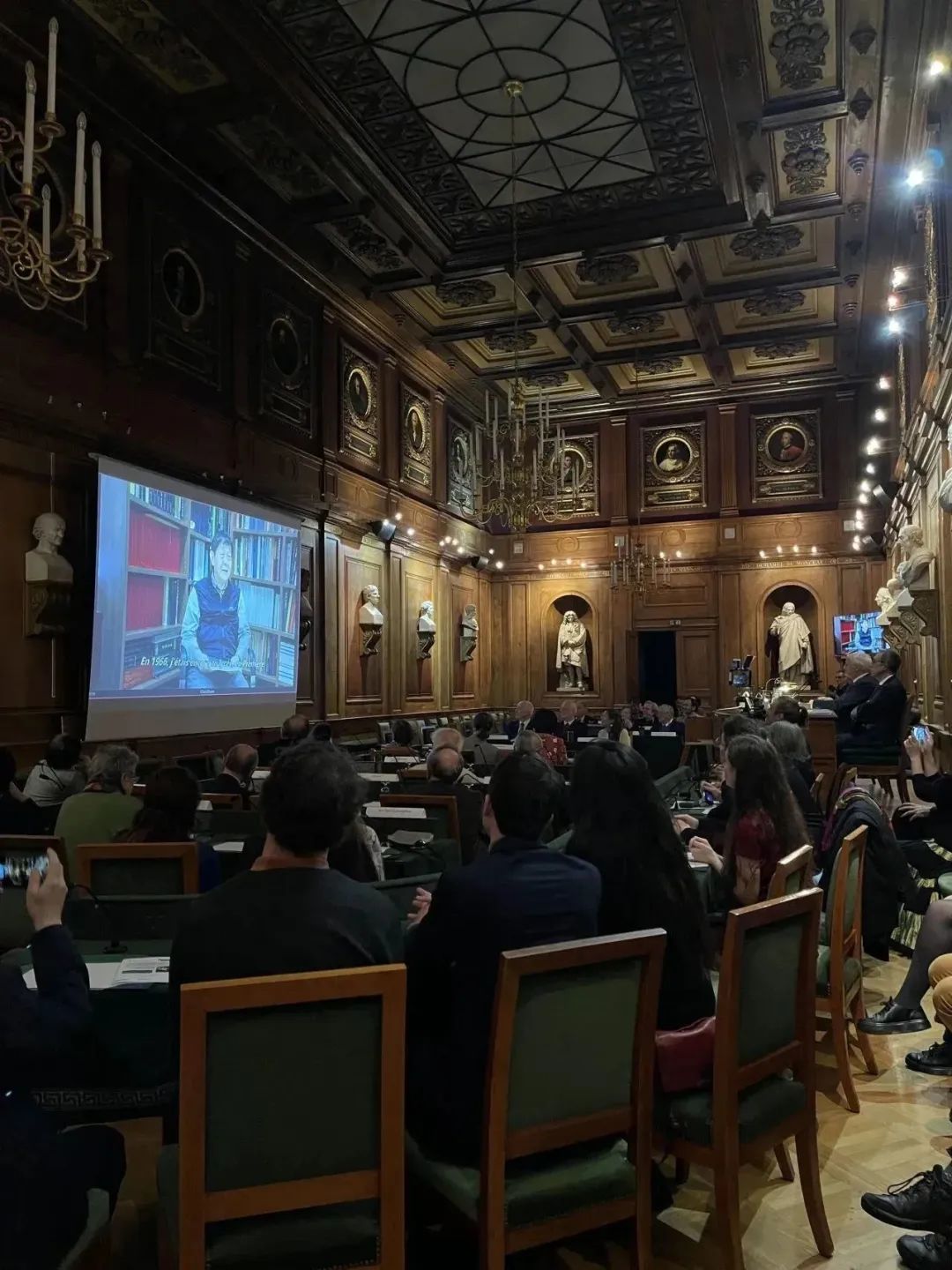 图为在颁奖现场,故宫博物院研究员王睿(李零学生)前往法国代领奖。(图片来源:北京大学官网)