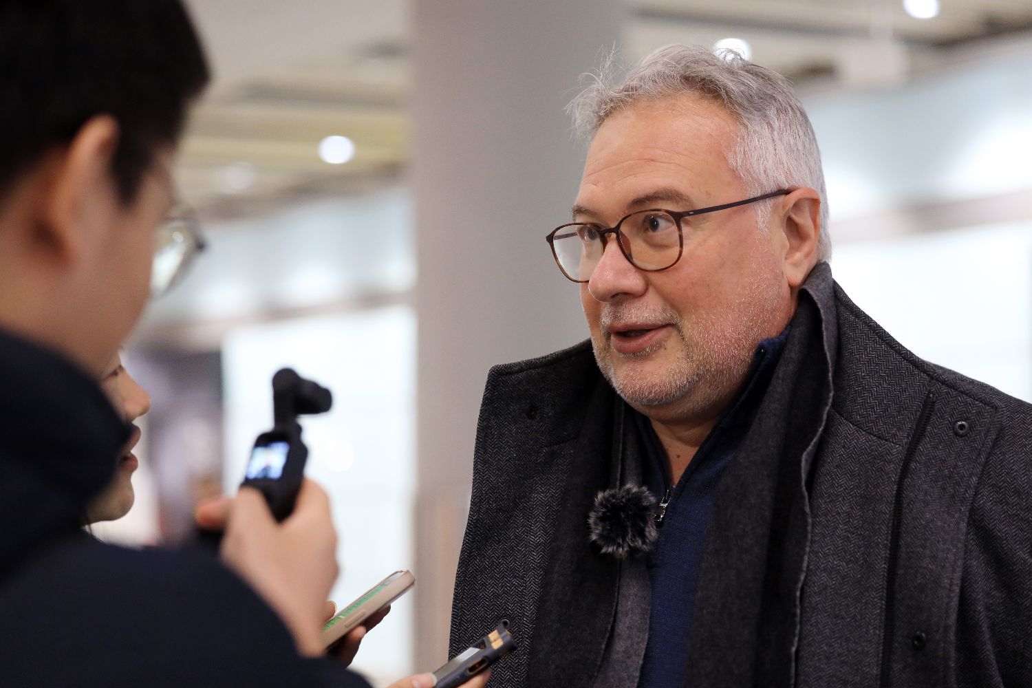 2023年12月1日,来自意大利的商人汉斯·格莱芬内格(Hans Michael Greifenegg)在北京首都国际机场接受记者专访。