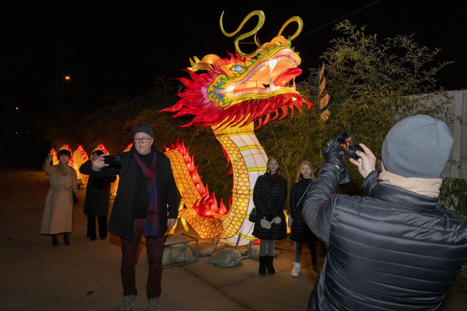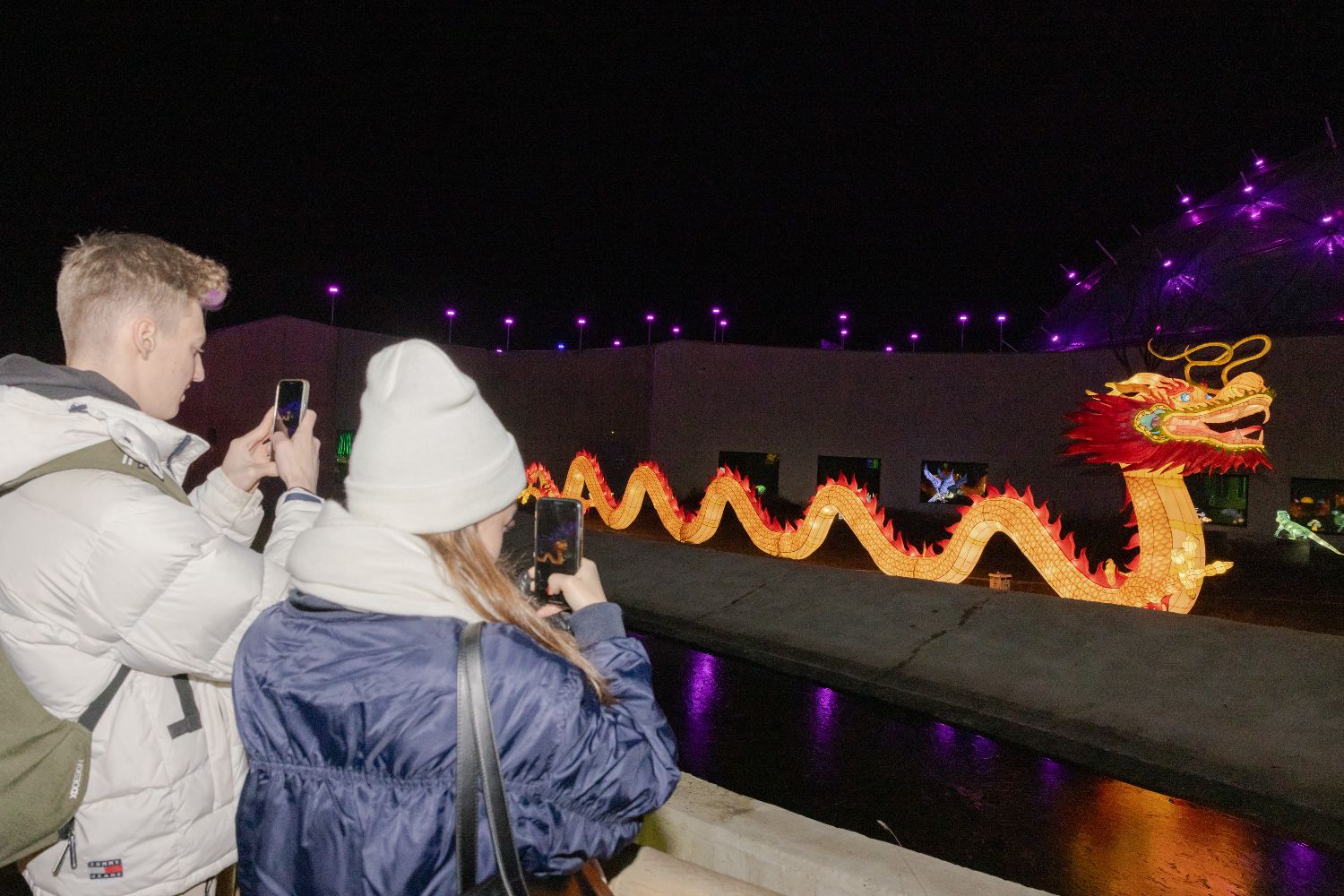 12月16日,在匈牙利布达佩斯举行的“欢乐春节”中国龙年彩灯节上,参观者拍摄彩灯。