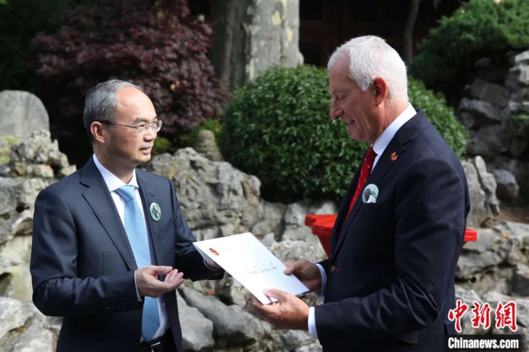 2023年8月,中国驻比利时大使曹忠明向董博转交习近平主席复信原件。(图片来源:中新网)