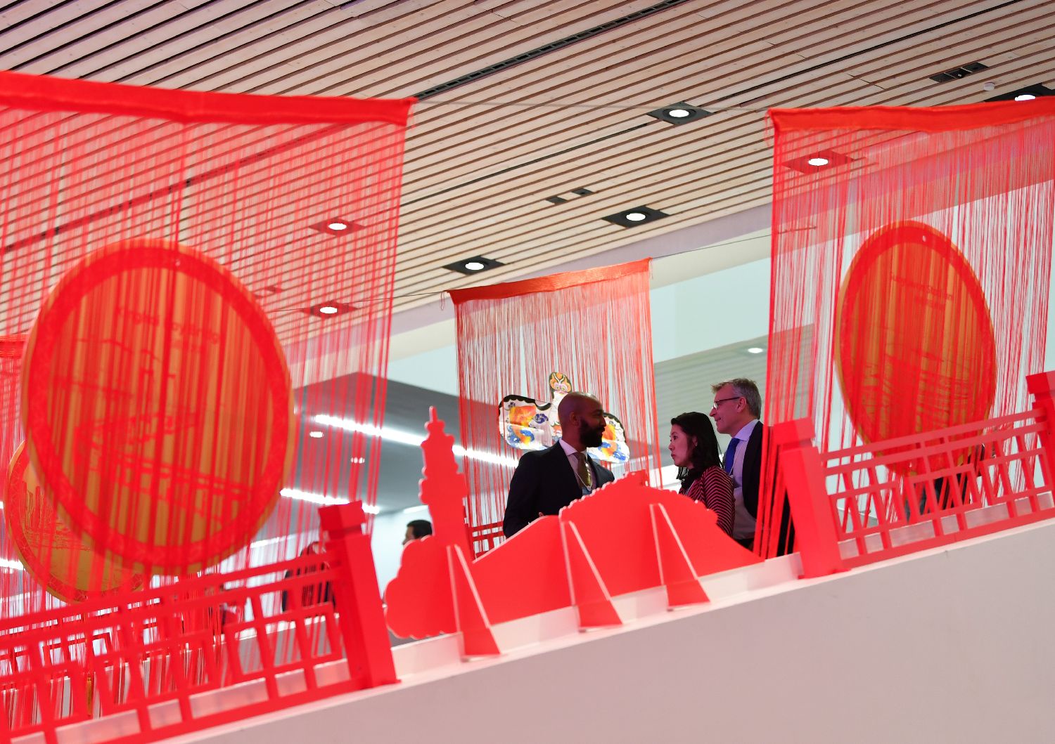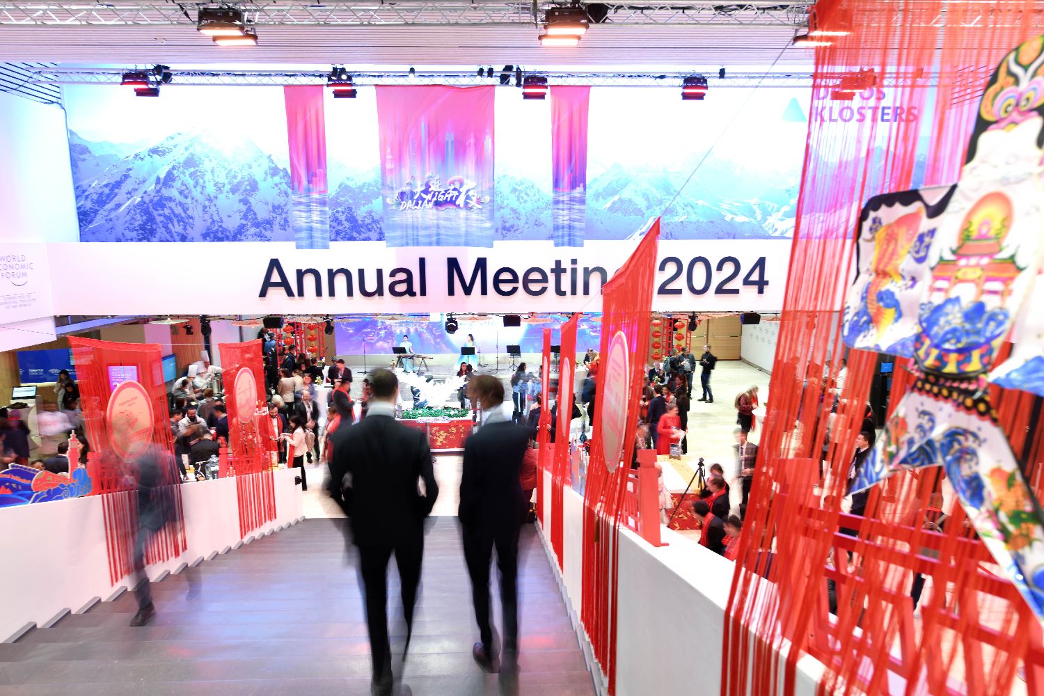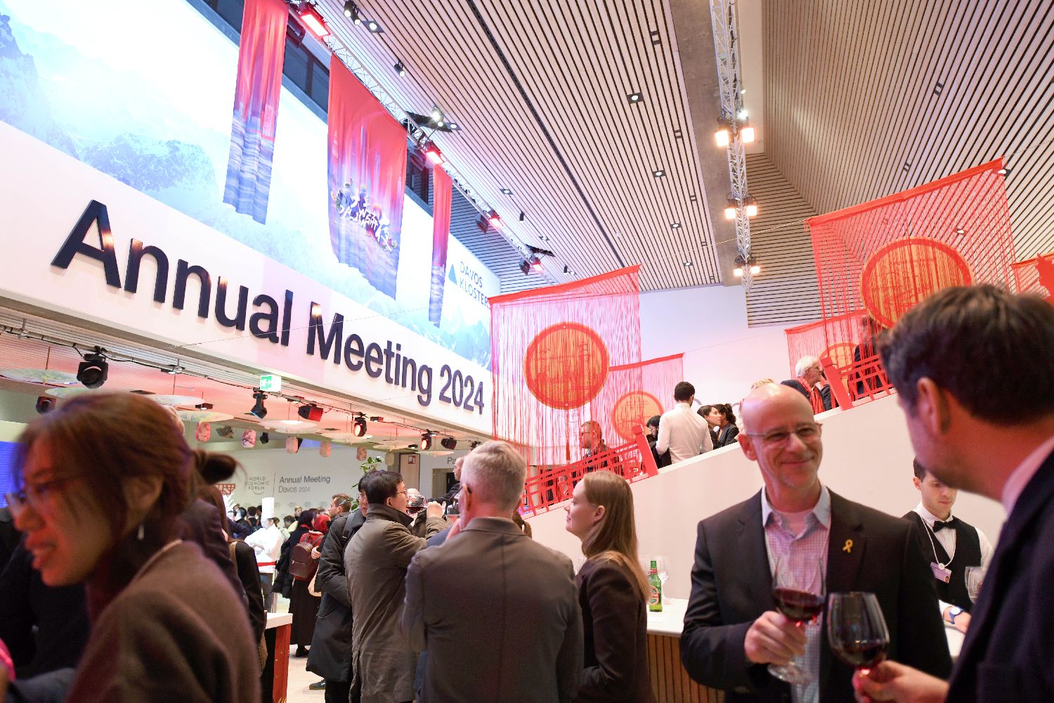当日,作为2024年新领军者年会的主办城市,大连在世界经济论坛2024年年会期间在瑞士达沃斯举办“大连之夜”招待会,会场的红色装饰让与会者在白雪皑皑的达沃斯共同感受中国春节的氛围。