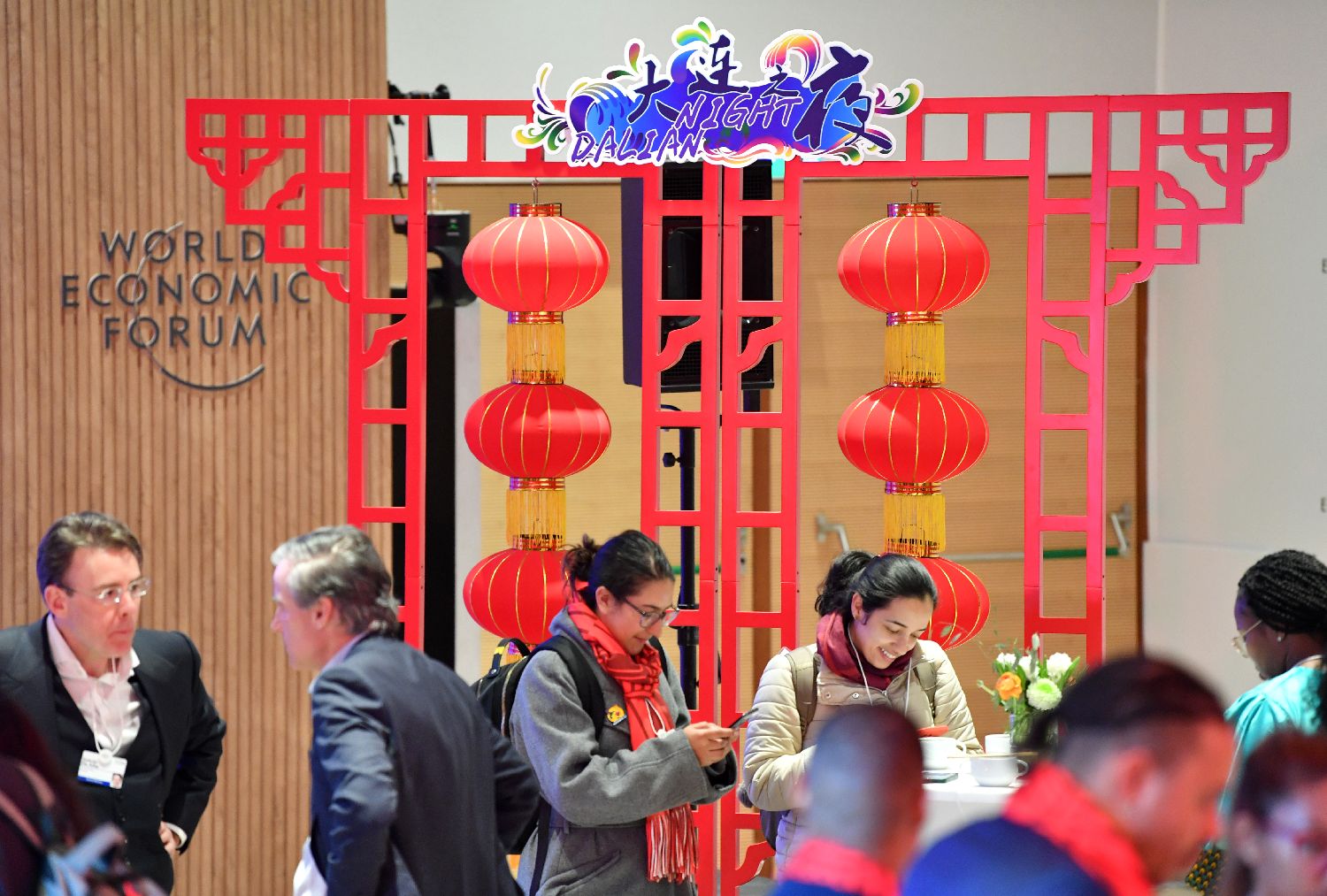 1月16日,在瑞士达沃斯,与会者参加“大连之夜”招待会。(图片来源:本文图片均据新华社)