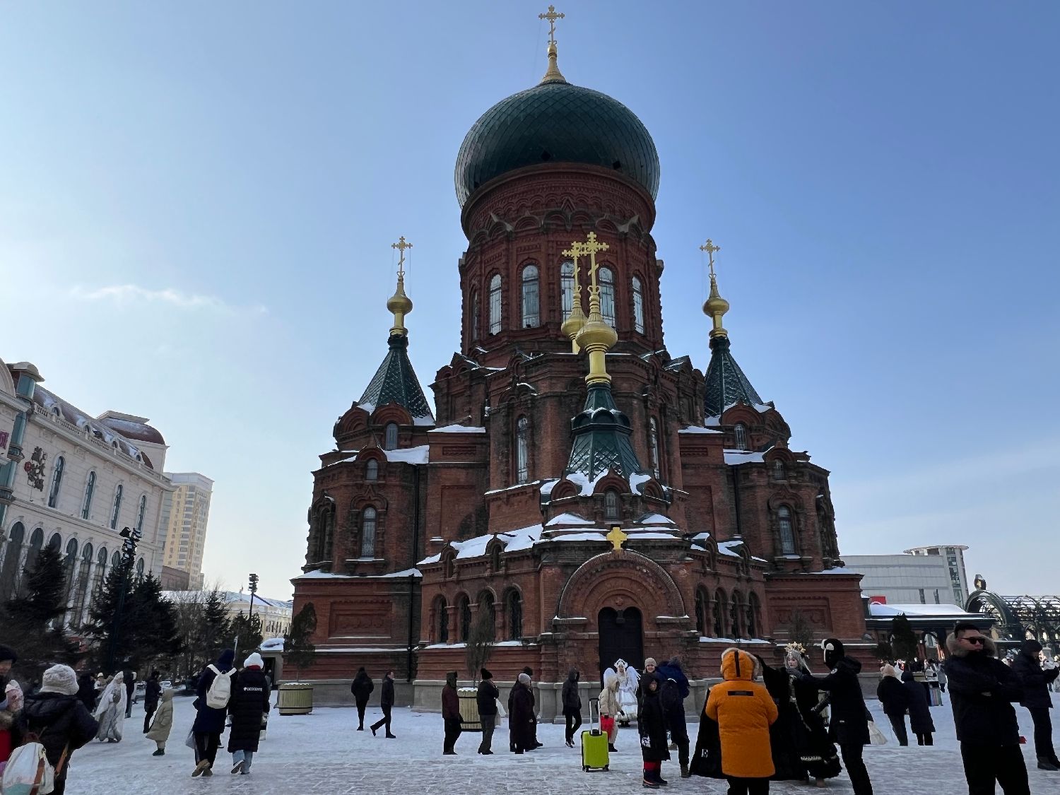 哈尔滨又称“东方小巴黎”,因为哈尔滨的建筑风格拥有教堂式、巴洛克、新艺术运动、文艺复兴、古典主义复兴等11个类型,许多都带有法国折中主义风格。图为圣索菲亚教堂,这是一座始建于1907年拜占庭风格的东正教教堂,为哈尔滨的标志性建筑。