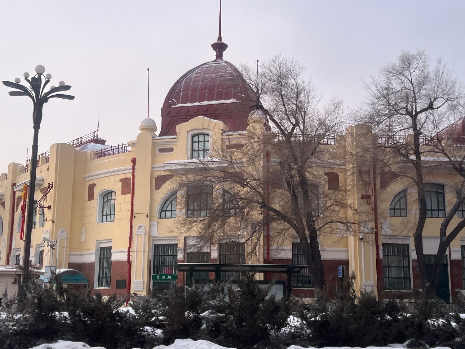 黑龙江省博物馆位于哈尔滨南岗红博广场(红军街50号),是一座古典欧洲巴洛克式的建筑,始建于1906年。建筑顶部有带有法国古典主义风格的长方形底扁形和半圆穹顶,使整个建筑错落有致,造型优雅。