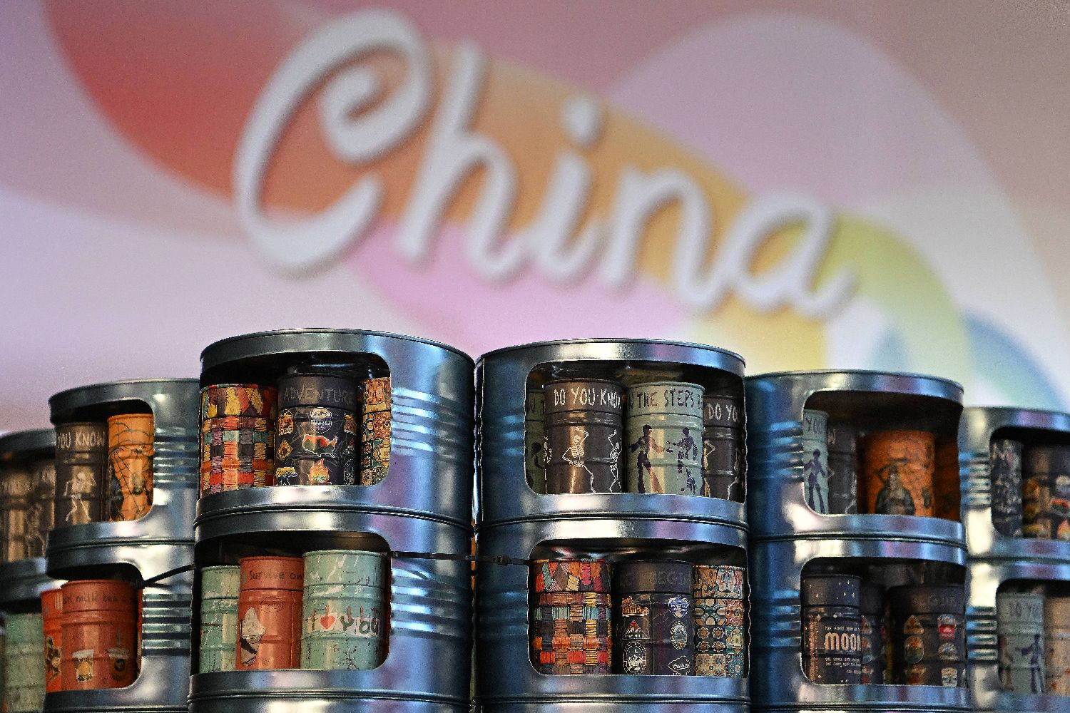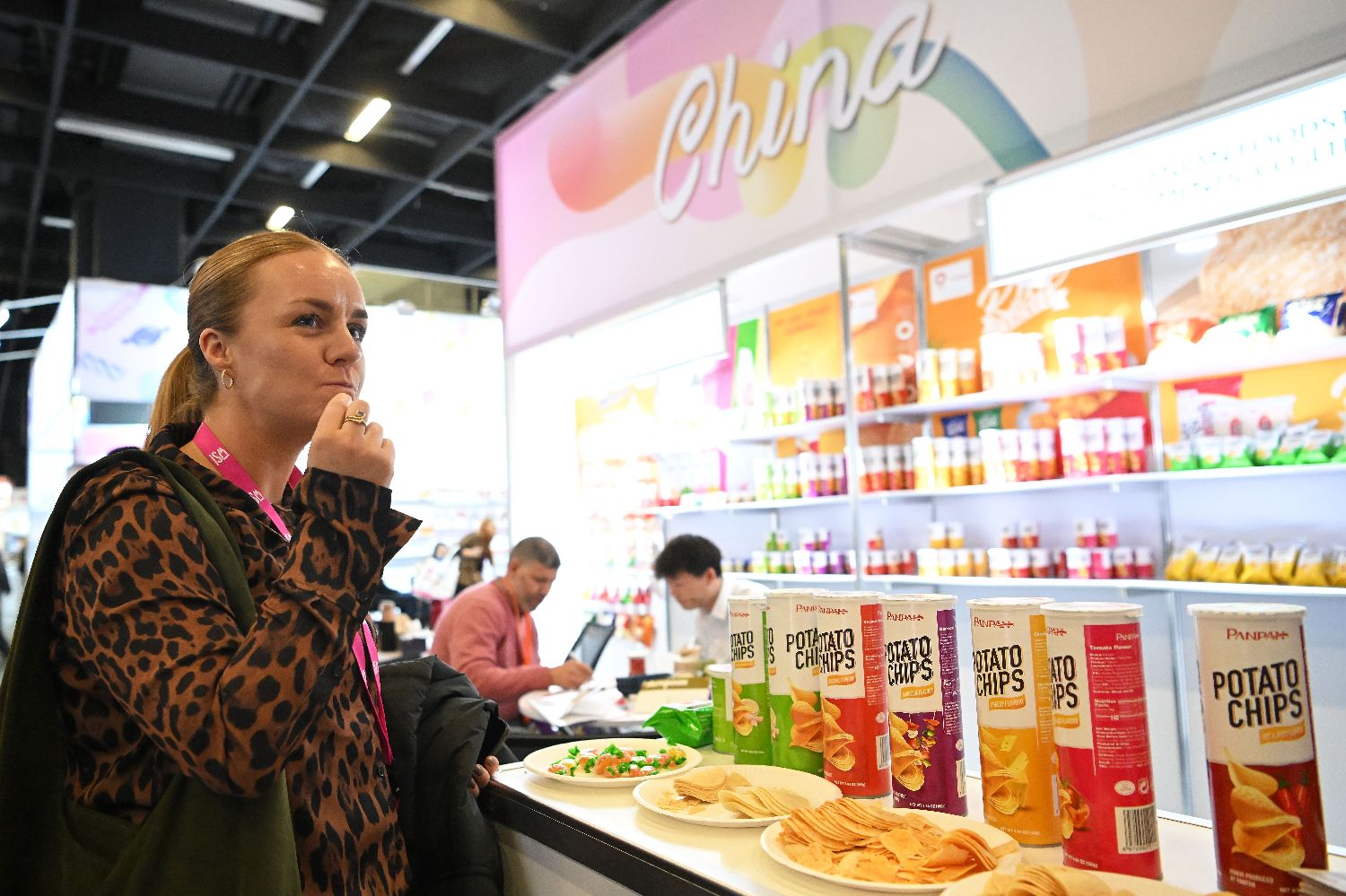 1月28日,在德国科隆,一名女子参观ISM糖果交易会的中国展区。