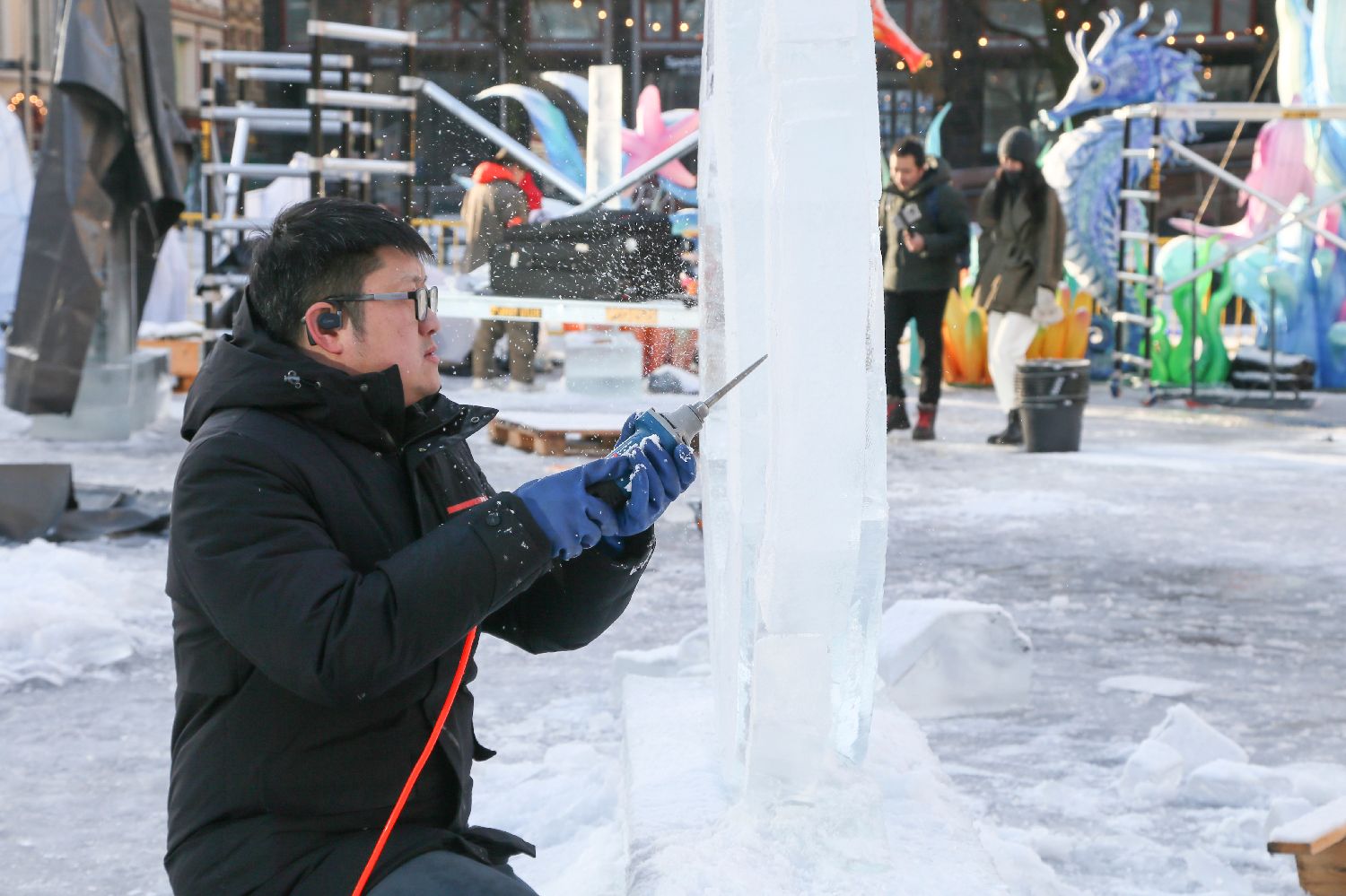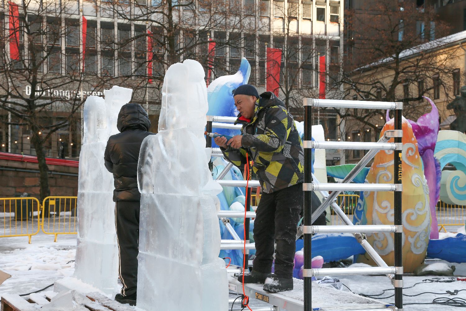 1月27日,冰雕师在挪威首都奥斯陆制作冰雕作品。(图片来源:本文图片均据新华社)