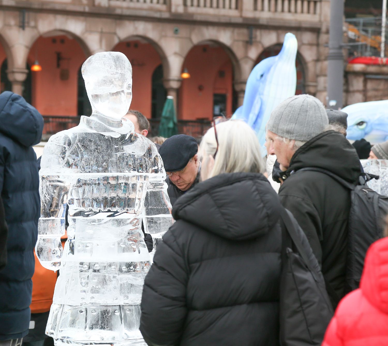 这是1月28日拍摄的在挪威首都奥斯陆展出的冰雕。