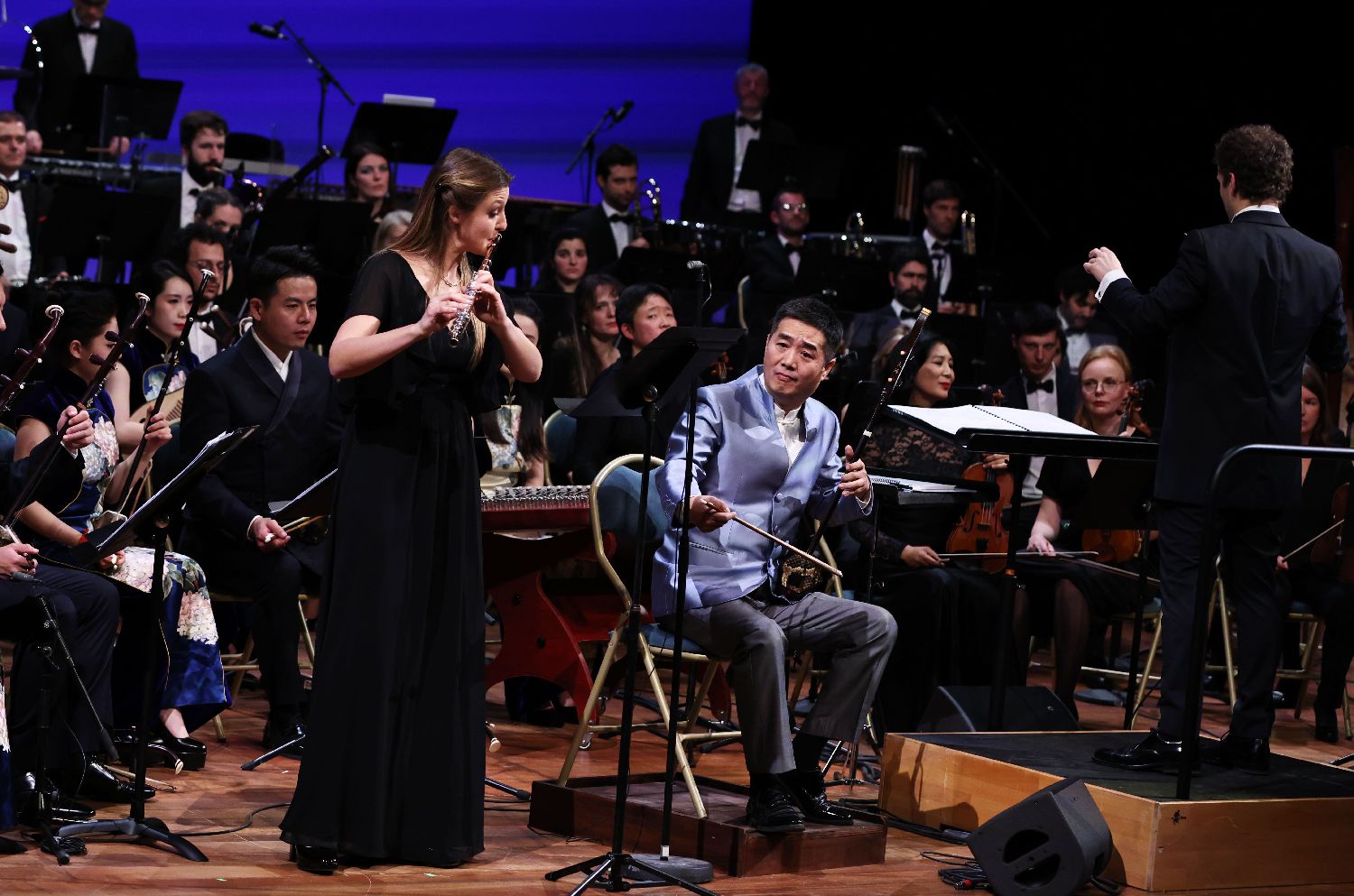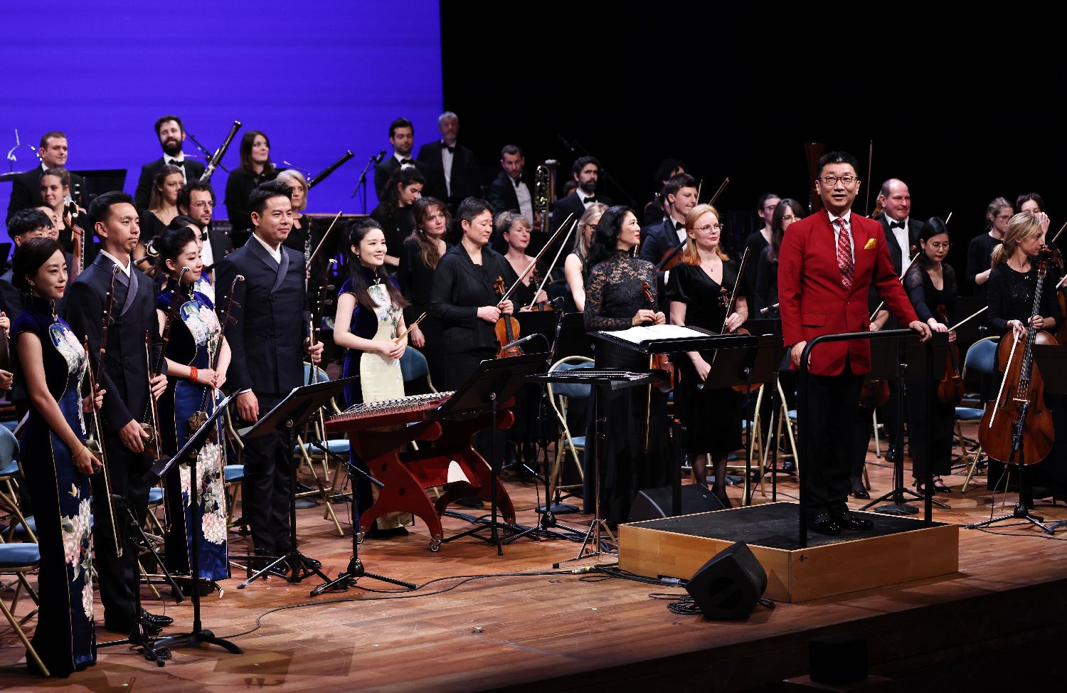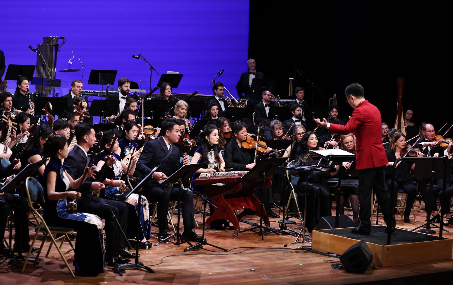 1月31日,两国音乐家在法国巴黎凡尔赛宫皇家歌剧院举行的音乐会上演出。