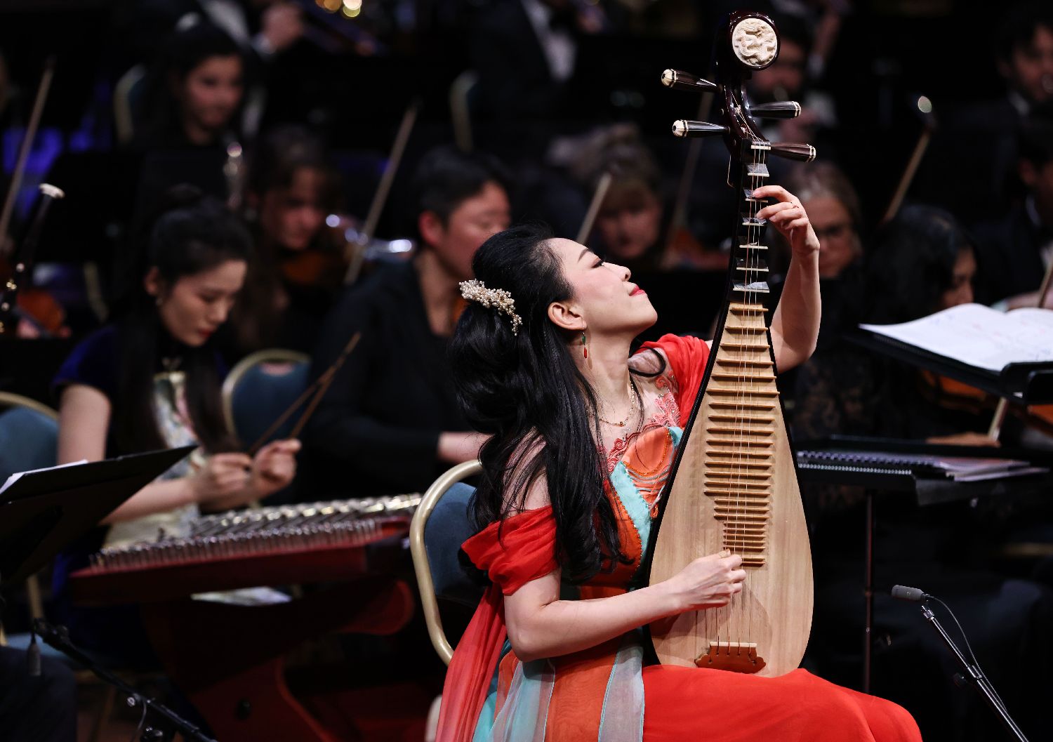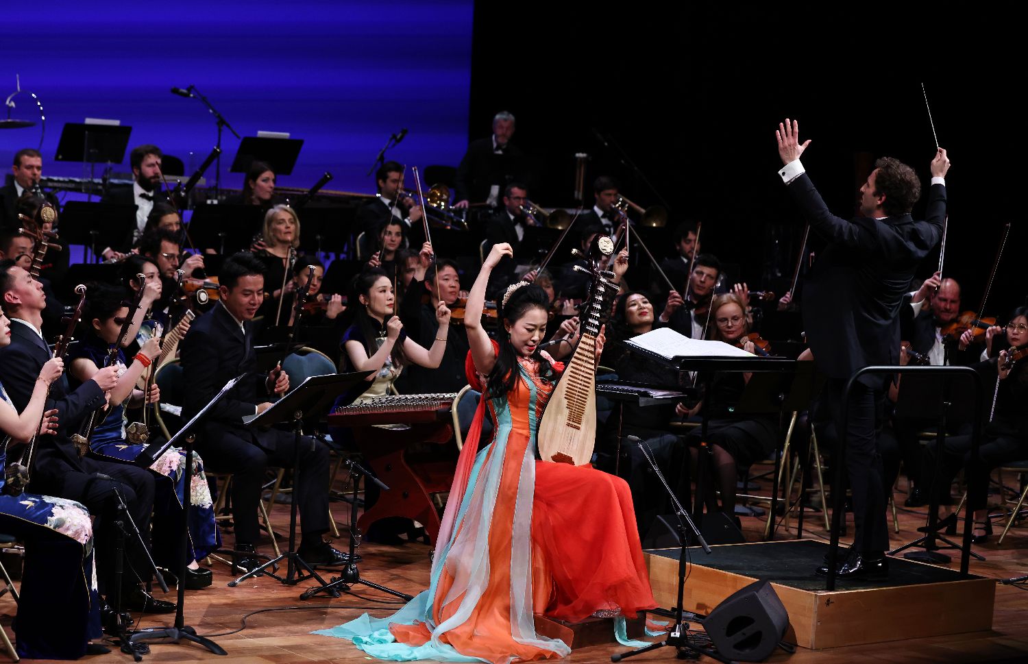 1月31日,两国音乐家在法国巴黎凡尔赛宫皇家歌剧院举行的音乐会上演出。(图片来源:本文图片均据新华社)