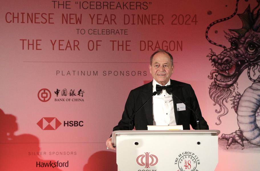 英中贸易协会主席、汇丰集团主席高级顾问古沛勤爵士在致辞中表示,英中两国之间在商业、文化、教育、科学、社会和政治等领域联系紧密。两国间的友谊和务实合作不仅符合双方的经济利益,也契合两国普通民众的利益。古沛勤爵士提到,中国对英国的累计投资超过了对整个欧盟市场的投资,英国公司的收益和持续发展与庞大的中国市场息息相关。古沛勤爵士还表示作为英中贸易协会主席,他很荣幸能够与方文建会长和斯蒂芬·佩里主席并肩合作,积极推动中英关系发展。此外,他对佩里长期致力于维护和促进两国之间宝贵友谊致以崇高敬意。他强调中英两国应继续通力合作,促进健康发展、经济繁荣,为全人类福祉做贡献。今天的晚会不仅仅是为了庆祝中国新年,更是为所有志同道合、致力于中英经贸往来的朋友们提供一个有益平台,为中英两国的合作和友谊打下更为坚实的基础。
