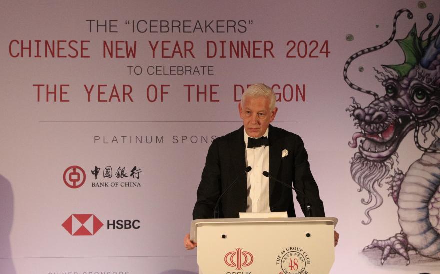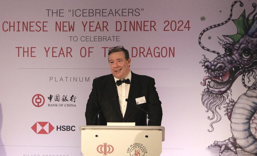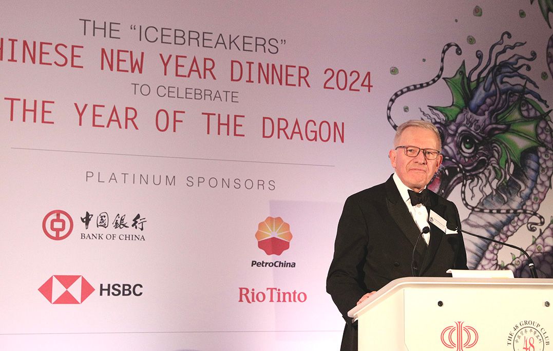 英国 48家集团俱乐部主席斯蒂芬·佩里在致辞中对中国总理李强的贺电与郑泽光大使对“破冰者”晚宴的大力支持表示感谢,并强调此次活动是加强两国关系和深化交流合作的宝贵机会。他表示,中国的发展势不可挡,英国更应该思考如何在瞬息万变的世界局势中更好地把握合作机遇,通过与中国的密切合作,进一步提升自身实力。回顾破冰者的历史,斯蒂芬·佩里希望“破冰者”精神能在两国间继续传承,期待新一代的破冰者们持续推动两国的交流与合作,为增进两国了解互信、促进互利共赢做出积极贡献。