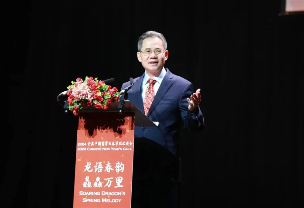 【欧洲时报记者王子璇、朱若溪、实习记者钟睿图文报道】2月7日,由全英中国学生学者联谊会主办的“2024年全英中国留学生春节联欢晚会”在伦敦顺利举行。现场中国驻英国大使郑泽光、牛津布鲁克斯大学校长阿利斯泰尔·菲特(Alistair Fitt)全英学生学者联谊会主席张瑞华先后发表致辞。